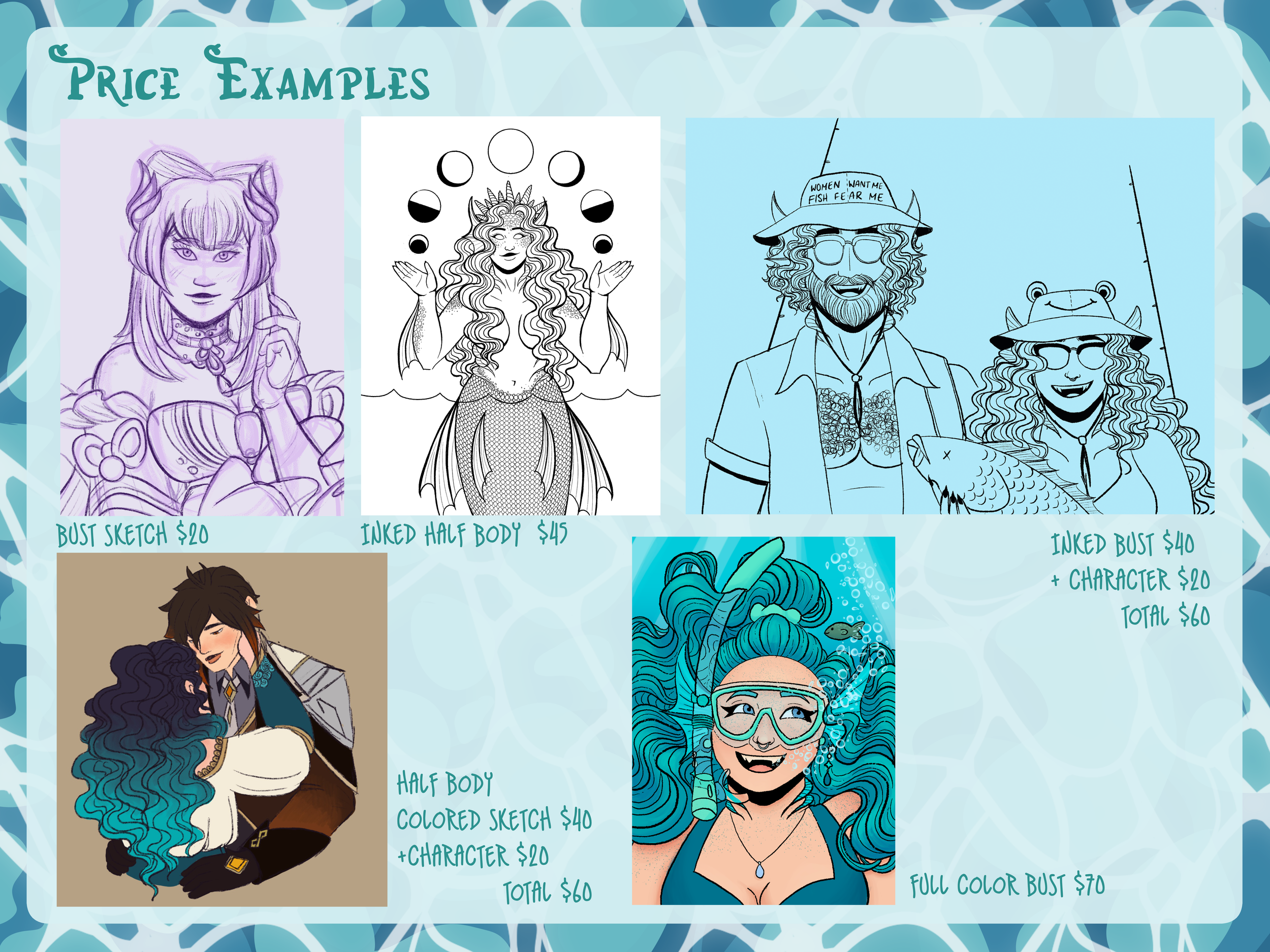 The prices listed above are estimates Backgrounds, extra characters, complexity, and other factors may increase your price.